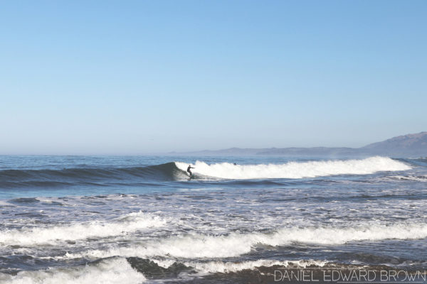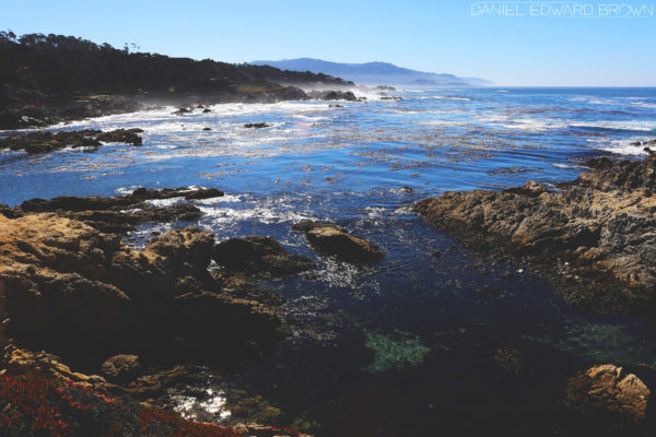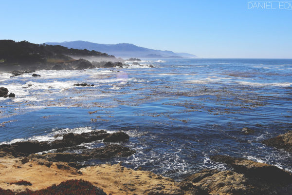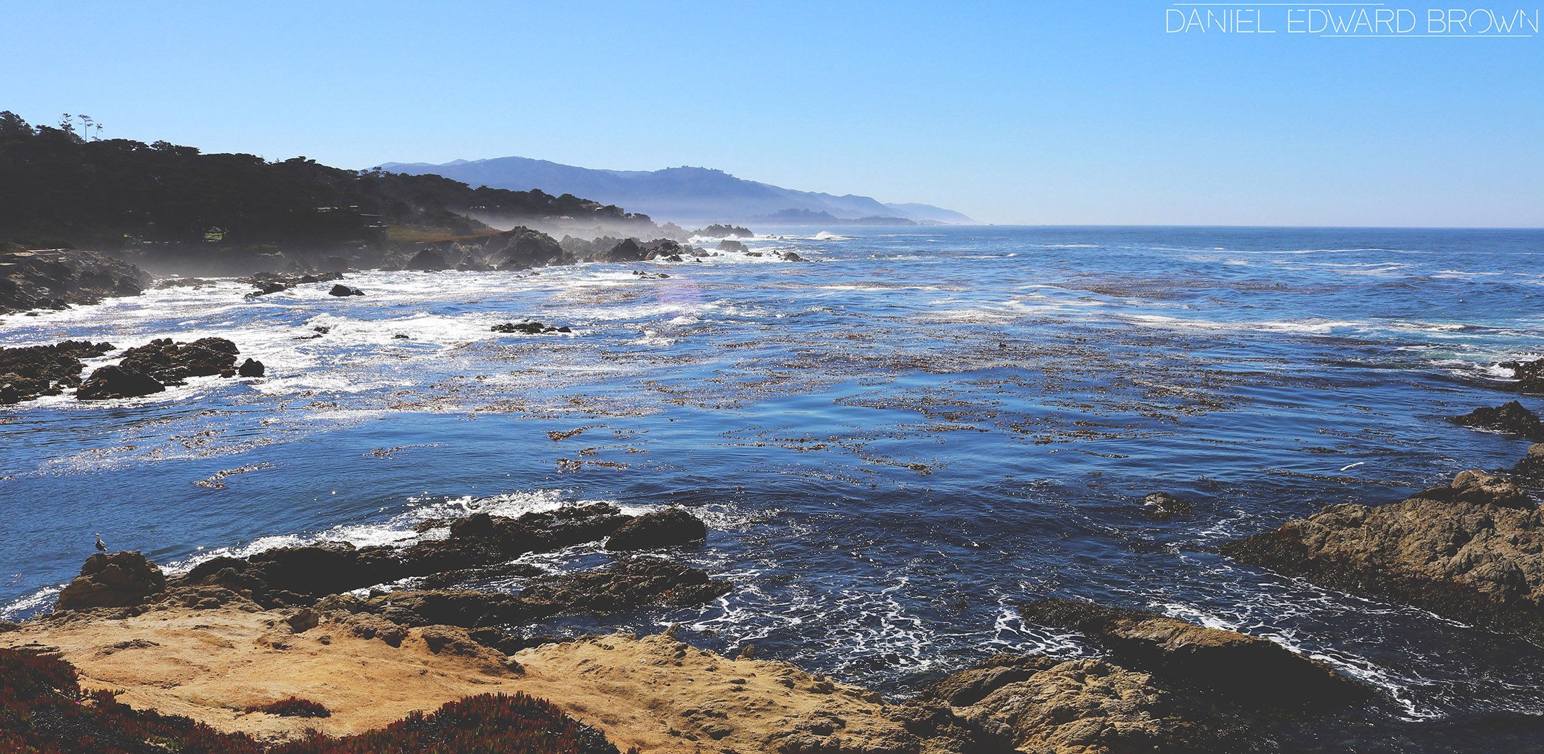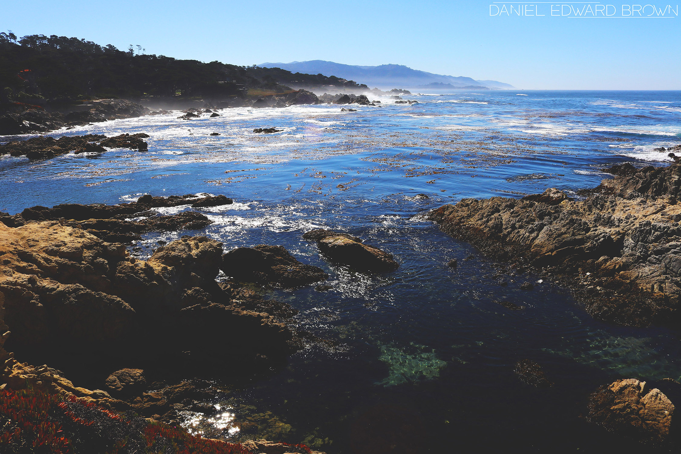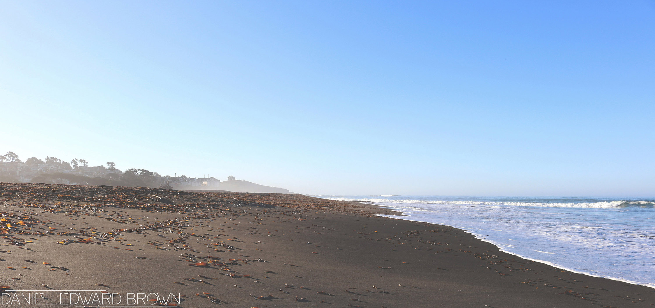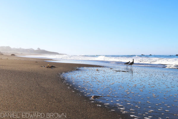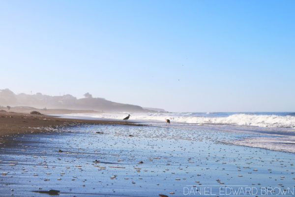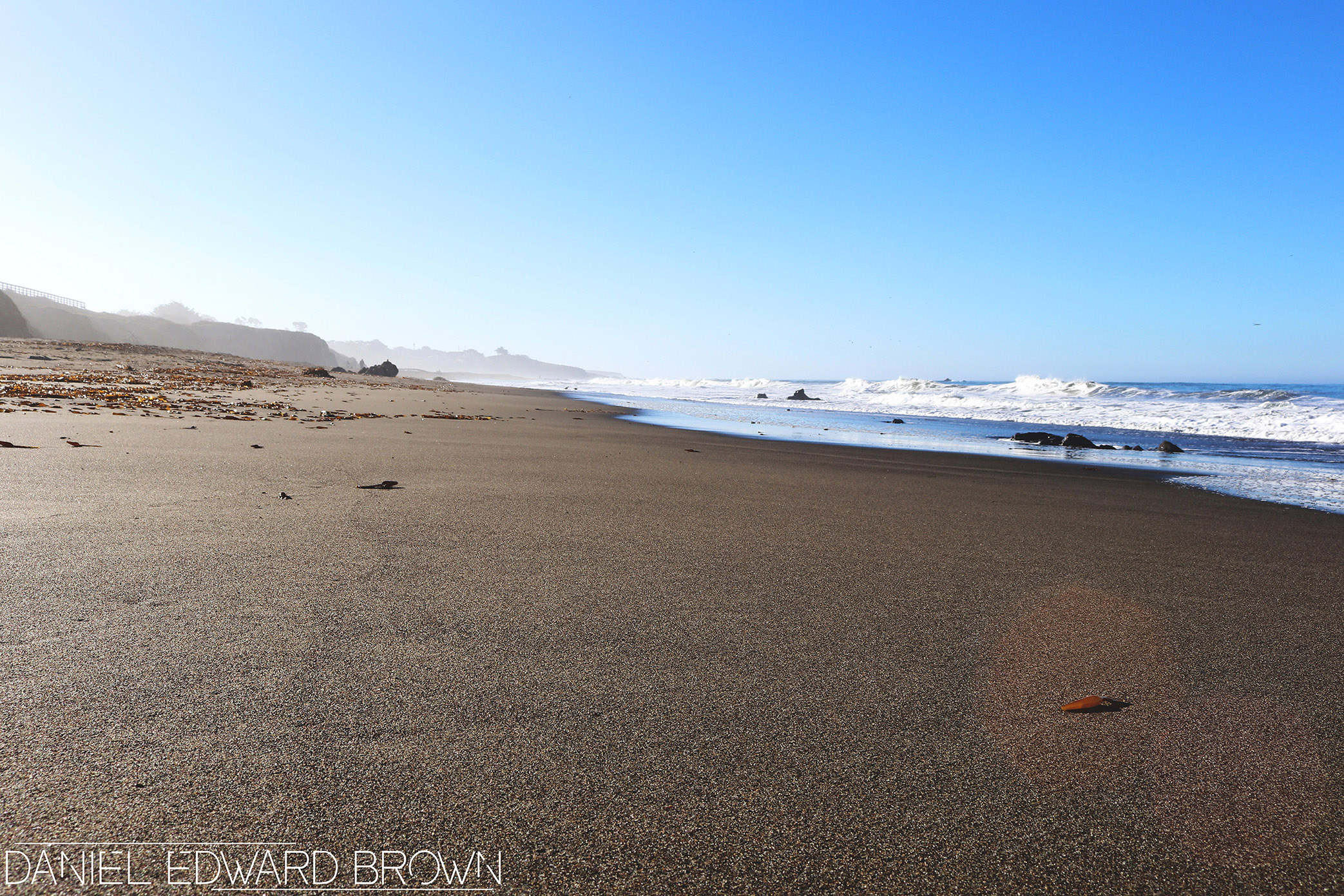 We spent the night in Cambria and the next morning my parents and I were up early so we headed down the road to Moonstone Beach. Supposedly you could find these beautiful Moonstones lying around on the beach, so they went off in search of some to make their fortune. I just spend the whole time taking photos. The sun hadn’t long risen so it wasn’t too warm, it wasn’t cold though. There was this really nice hazy sea mist hanging over the beach which was quite fun to try and photograph, it looked really cool with the sun shining behind it.