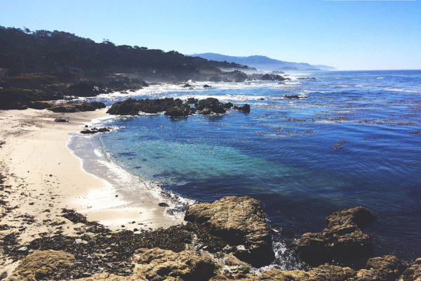 On our way to our digs for the night, we made one last stop at Point Lobos State Reserve to have a walk around the coast. Again, I couldn’t get over how beautiful it was and how much wildlife there was to see. We spent a while watching two Vultures snacking on something floating not too far from the base of the cliff we were walking up. Bets were placed as to what it was, but even with two set of binoculars and a zoom lens we still couldn’t come to a unanimous decision. Anyway, dead animals aside, we then turned out attention to trying to spot some sea otters. It was pretty hard to find them. They’re quite small, and the sea was scattered with debris from the local trees so every time a wave moved a log or something that was floating in the water we all thought it was an otter. Luckily we had David Attenborough with us – or our friend Clive as he’s more commonly known – who can spot an animal a mile off. It didn’t take his hawk eyes long to spot a couple of otters – real ones this time, not the kind that grow on trees.