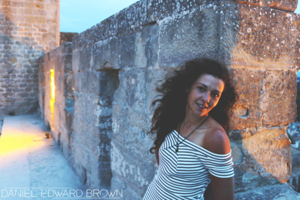 Whilst we were up on the wall walking around the town, we found a spotlight shining up onto the castle walls. As my cousin walked past, there was a turret in the stone wall allowing the light to shine through onto her face. It was the perfect spot for another one of our infamous photoshoots, so of course we took full advantage of this.