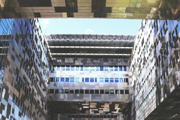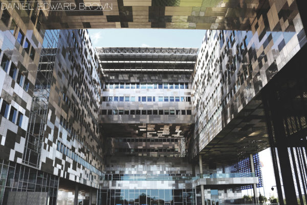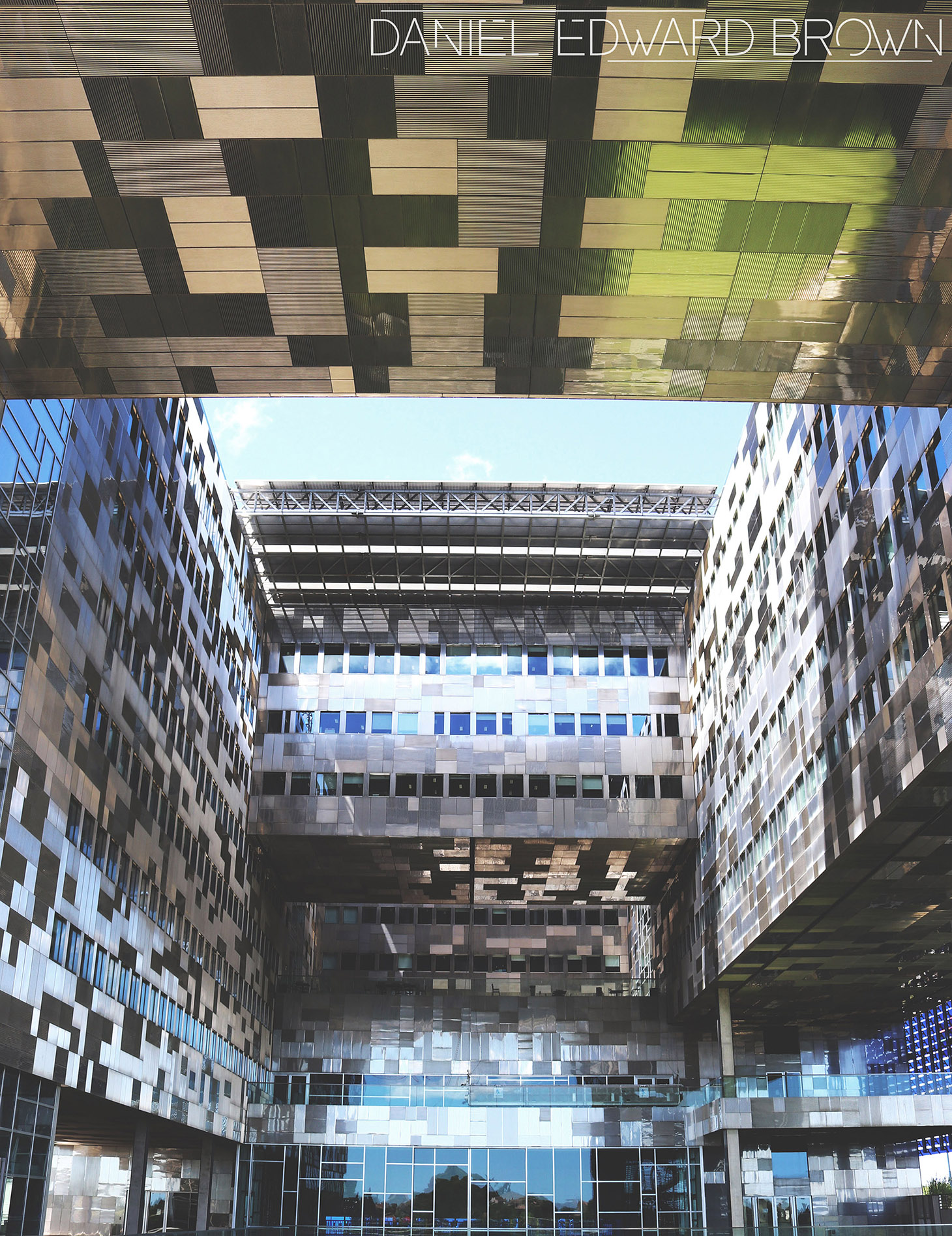 The exterior walls of the center of the square were completely different to the other side. Smooth, metallic, reflective. They literally couldn’t be more contrasting. They too had their own unique design. I think the only way I can describe it is like pixelated camouflage. Like you’d see in the graphics of a Play Station 1 game. Blocks of all different shapes, sizes and monotone colours slotted together like someone was playing a giant game of Tetris.