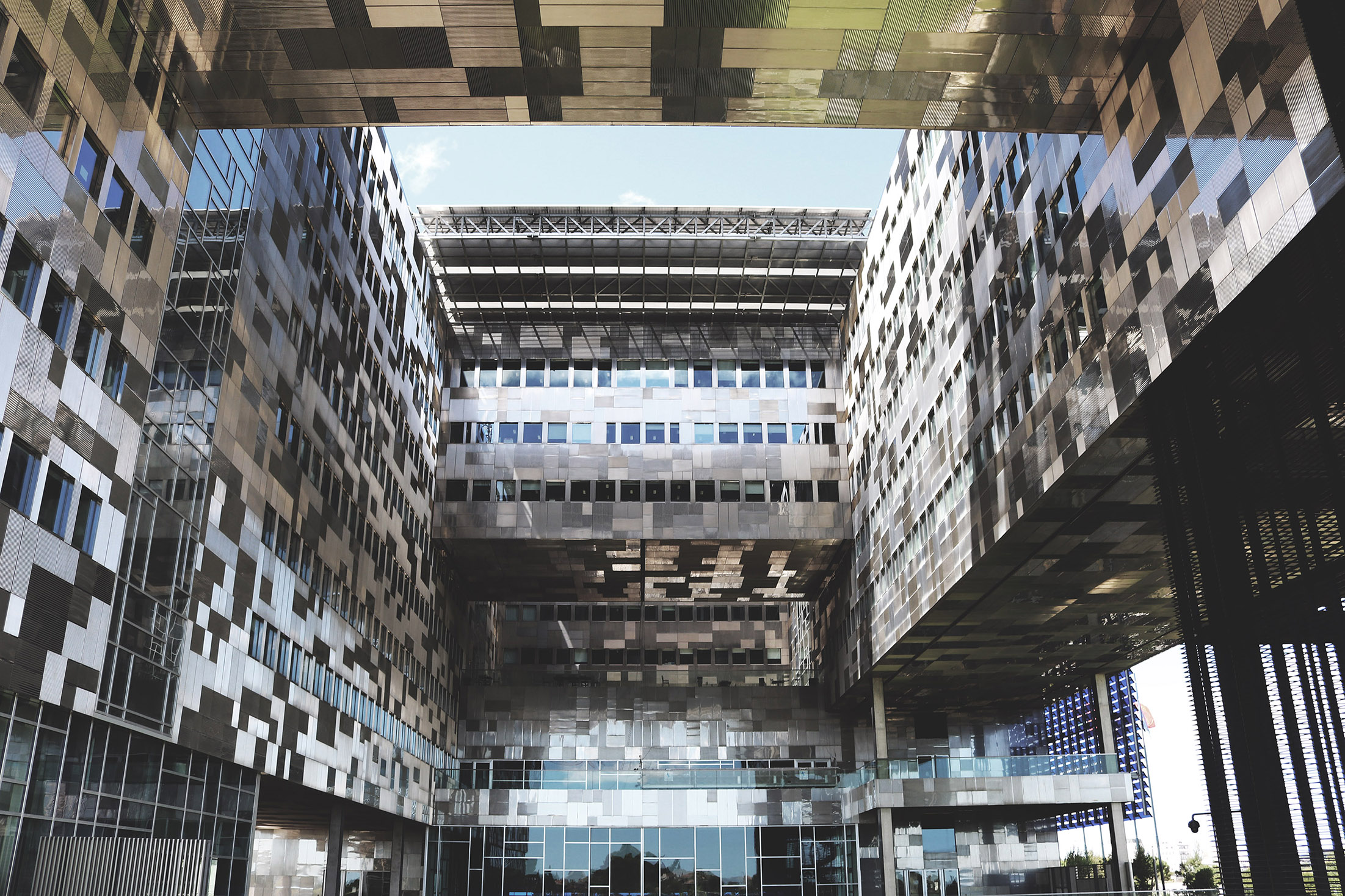 The whole exterior looked like it was made up of these grated metal panels a bit like wooden pallets, so you could kind of see through them. They gave the whole building a very weird futuristic appearance, someone definitely went overboard on the texture features when this was designed!