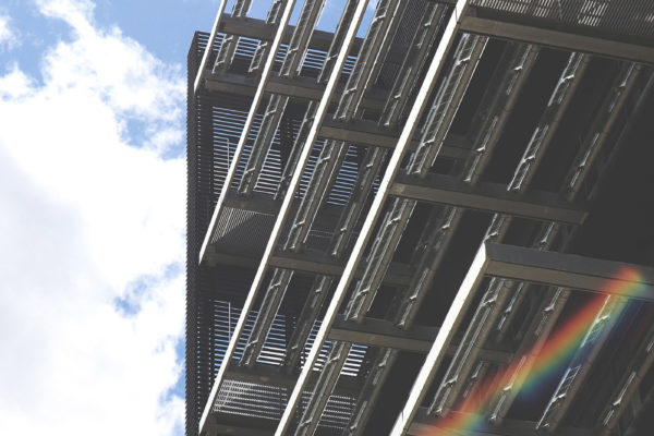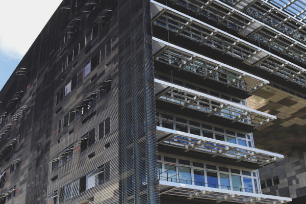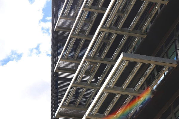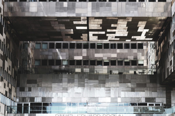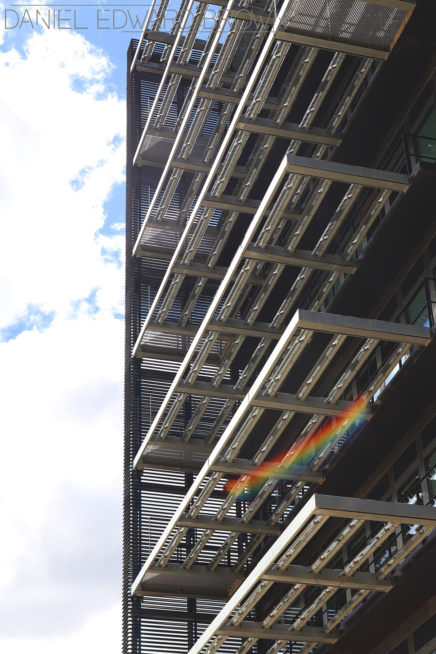 The lightness of this section of the building was completely different to the dark exterior, so photographing the two was like photographing two different buildings altogether. Things that worked for one did not work for the other. I tried to get shots where both the light and dark sections of the building were visible, but it was quite difficult due to how the building was structured, and I think my friends were keen to move on and head further into the city.