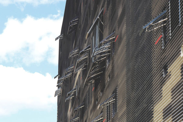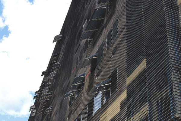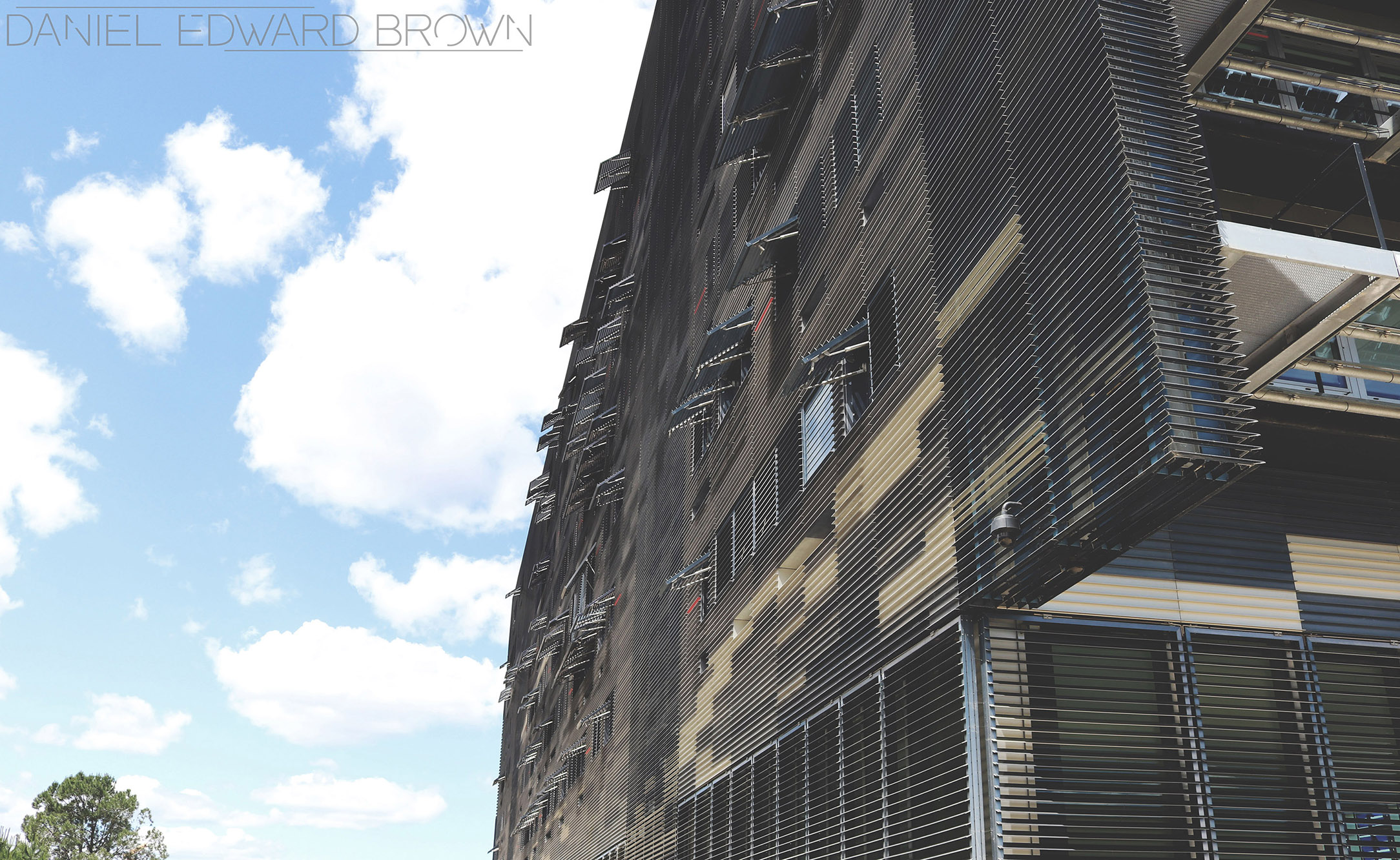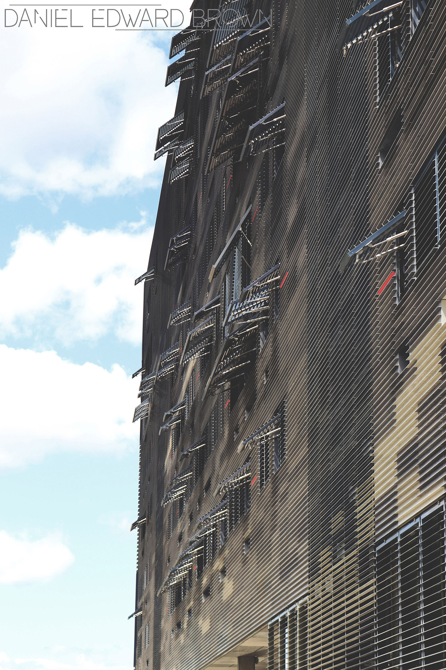 All down the side, hatches in the metal grates opened outwards to reveal windows. Every time I looked up I kept thinking how much it reminded me of a ship or spacecraft from a film or something. I guess the design of the whole thing was maybe to minimise the heat from the sun whilst still allowing sufficient light to enter the windows. No idea if it worked or not.