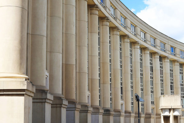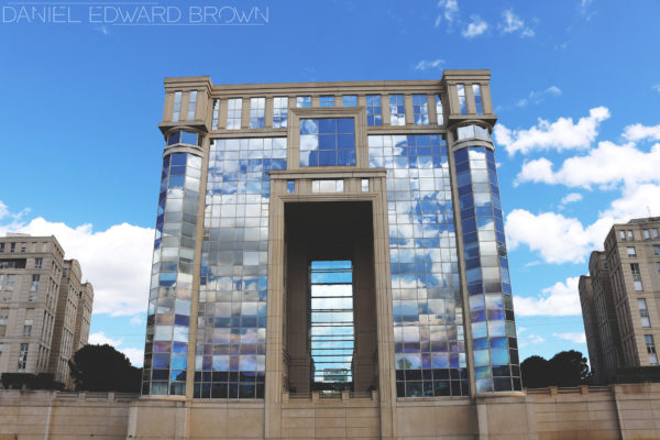 From there, we headed up into Place de l’Europe, a beautiful grassy area enclosed on one side within a semicircle of tall yellow stone buildings. These buildings were very similar to the council building directly opposite on the other side of the river. Walls from top to bottom made of glimmering windows, reflecting the blue sky, broken into strips by stone pillars set back into the rest of the building.