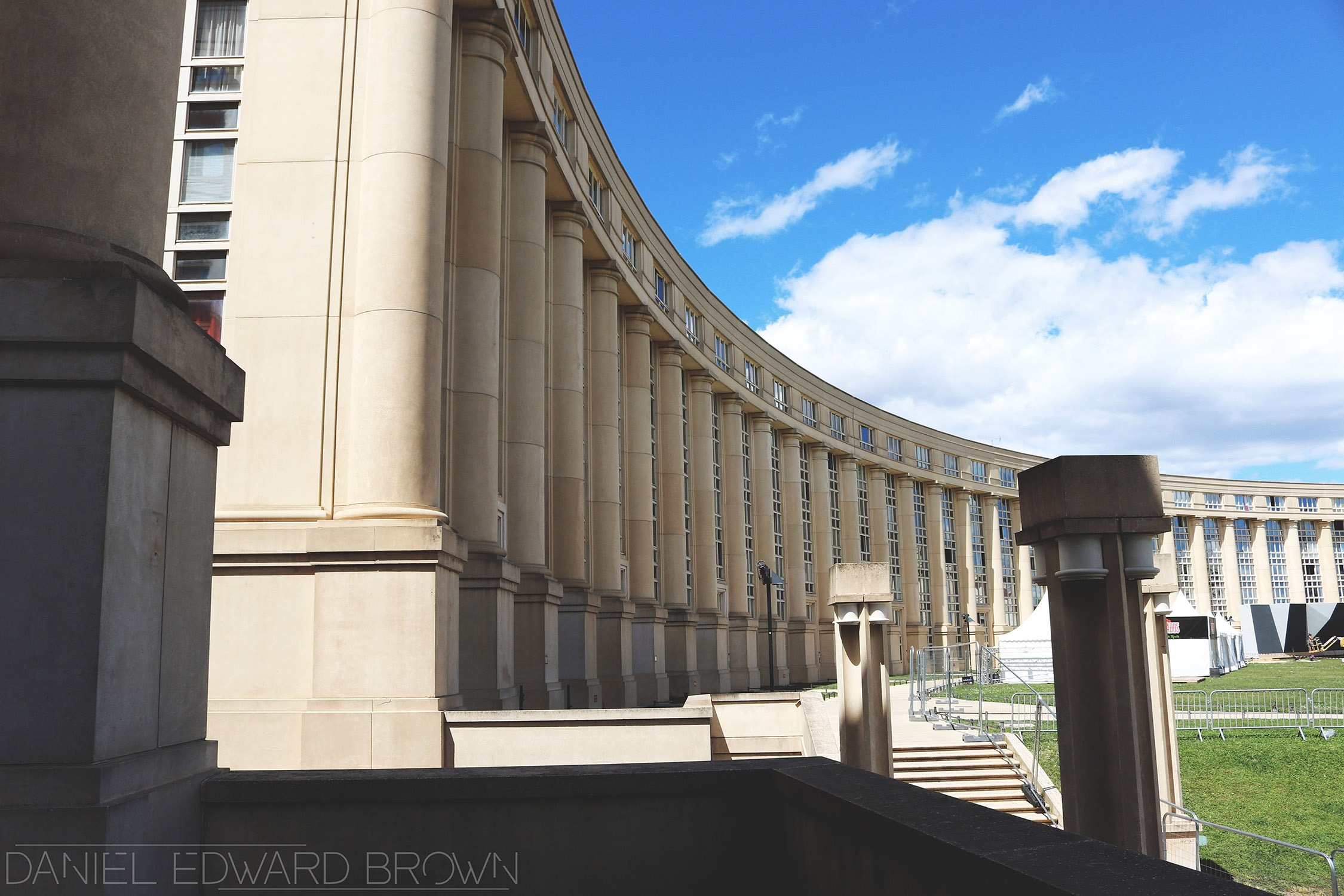 I tried to get as close to the buildings as possible to photograph the curvature, but it was extremely difficult to get a good photo with that effect and not get in any of the fencing or building work.