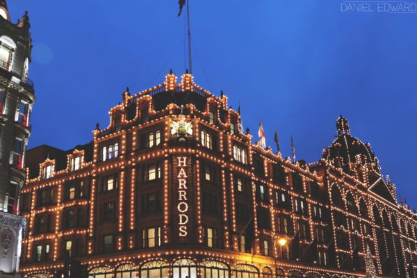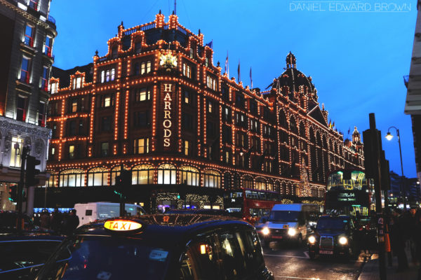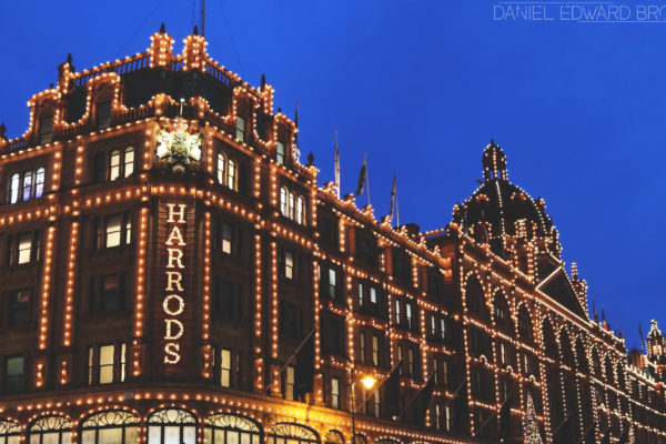 I needed a good shot of the front of Harrods. The way the lights are arranged on the building make it pretty amazing to look at, so it’s definitely something I wanted to include in my project.