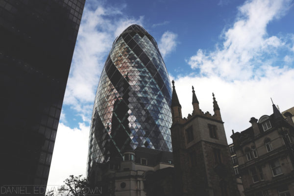 My intention with this shoot was to photograph and old church or chapel near the Gherkin. I wanted to capture the contrast of having an old building in the foreground and a modern building in the background. The contras of old an new architecture displayed in one photograph would make a great image for my project, which is why I wanted to get this shot. I must confess, this was not completely my idea. I had seen similar thing being done in different cities all around the world, but I really liked the idea of it and definitely wanted to include it in my collection.