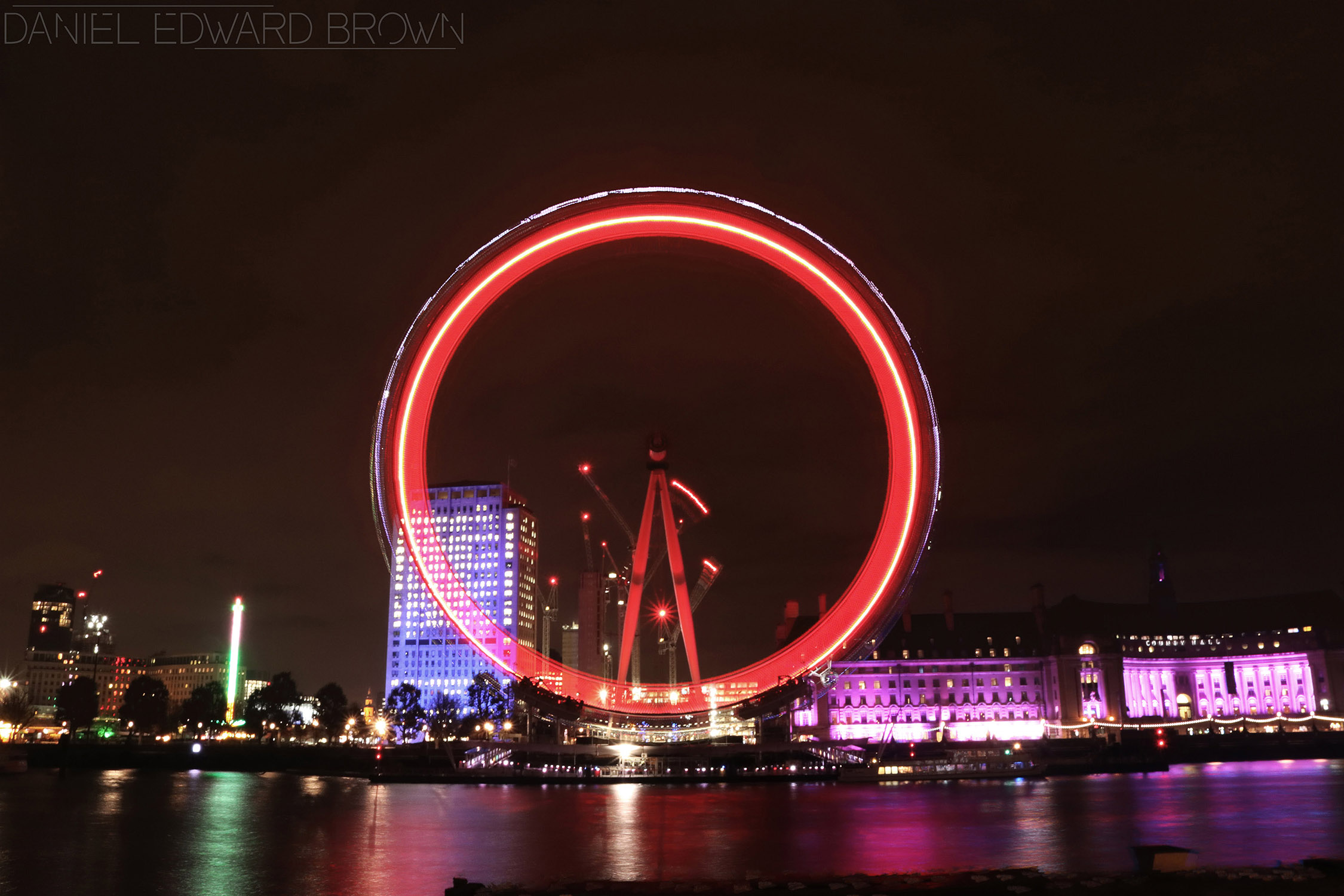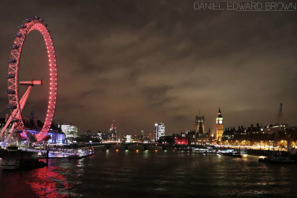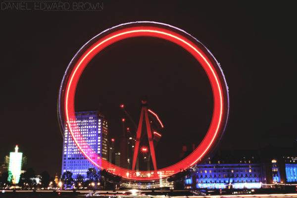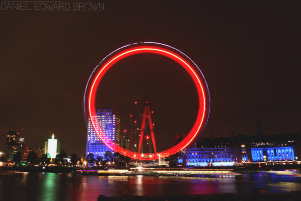 I have been waiting to photograph the London Eye for a while now but I wanted to do it at night to try and get some slow shutter speeds to show the movement of the eye. For this, obviously I needed to wait until it was dark enough. I thought it would be better to wait until Winter to do this, that way I wouldn’t have to wait until that late at night before it was dark enough. I would be able to do it in the evening.