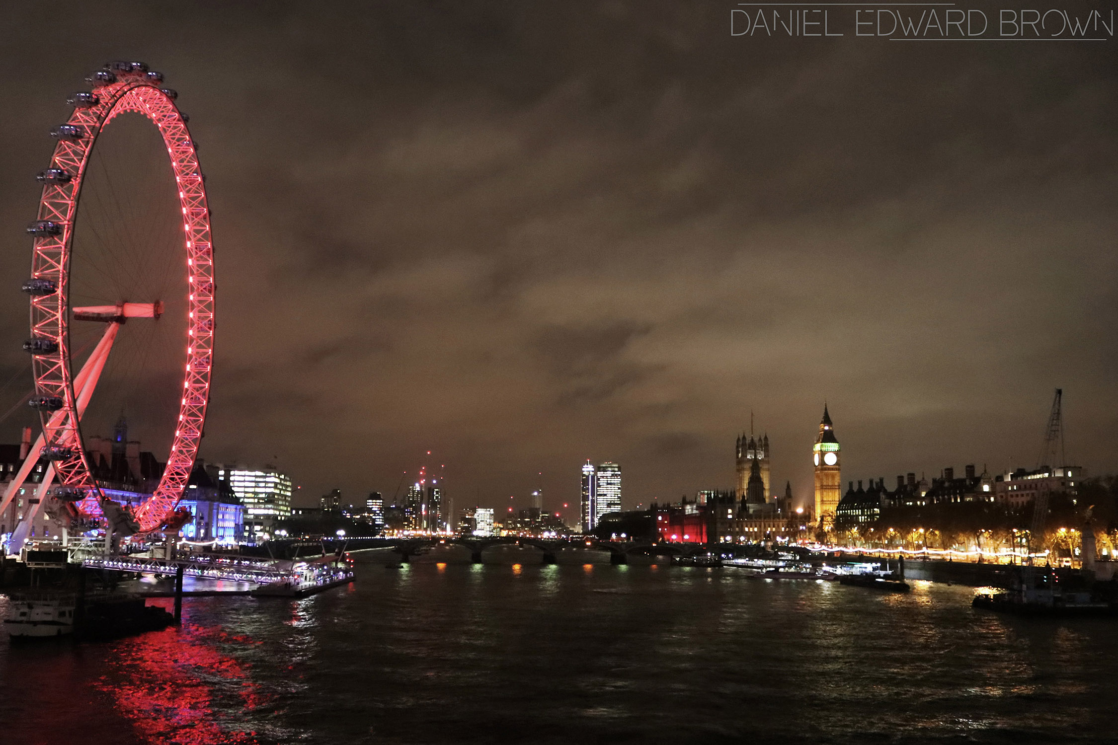 I stayed in work late one night, well, I say late, I think I left at about 4:30, which isn’t exactly late in most people’s eyes, but it’s late for me. Anyway, I walked from my office, down the river until I got to the bridge by Charing Cross station. I crossed the river and came back on myself a bit to get in line with the eye.